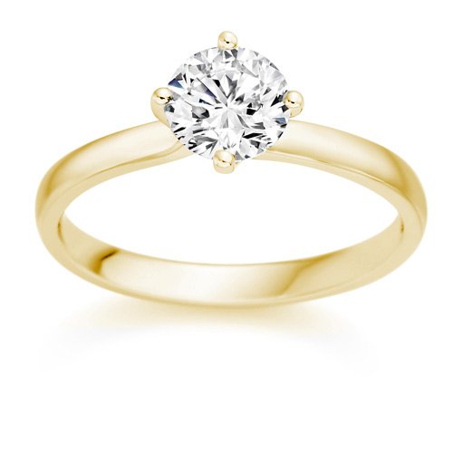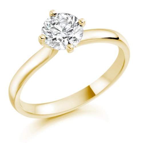 18ct Solid Yellow Gold 0.42 Carat F-Colour SI1-Clarity Certified Fine Diamond Prong Setting Solitaire Ladies Engagement Ring. The diamond is set in 18k Yellow Gold on a Prong Setting and has an approximate band width of 2mm.