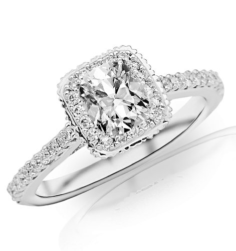 0.93 Carat Cushion Cut / Shape 14K White Gold Stunning Vintage Halo Style Diamond Engagement Ring ( H-I Color , VS1 Clarity )