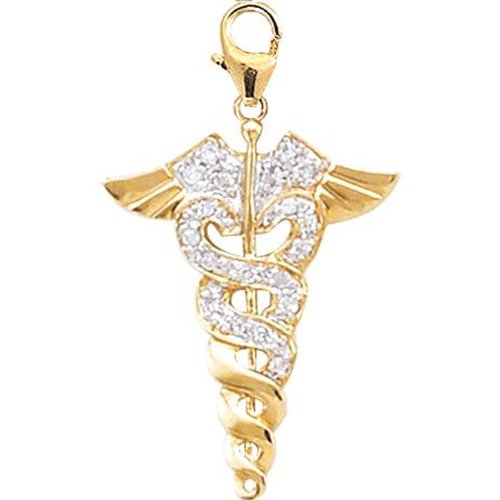 Designed in 14KT Yellow Gold this diamond charm features 0.1 CT in diamonds. The charm weighs approximately 1.15 grams and measures 16x32mm. The diamonds are HIJ in color and I2 in clarity. The charm features a lobster lock that can be applied to any bracelet or chain.