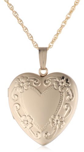 14k Yellow Gold Filled Engraved Heart Locket, 20"