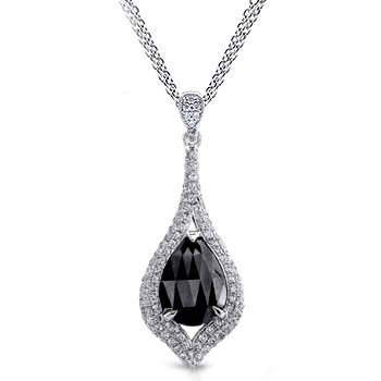 2.62ct Pear Cut Black Diamond & Vs Diamond Pendant 14k Gold