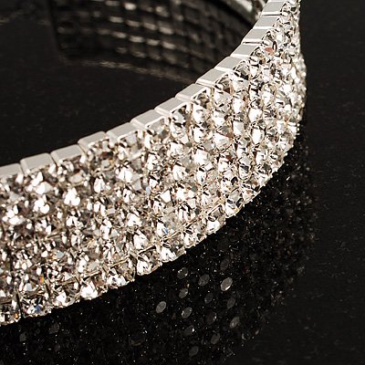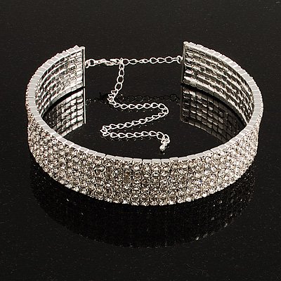 5-Row Swarovski Crystal Choker Necklace (Silver&Clear)