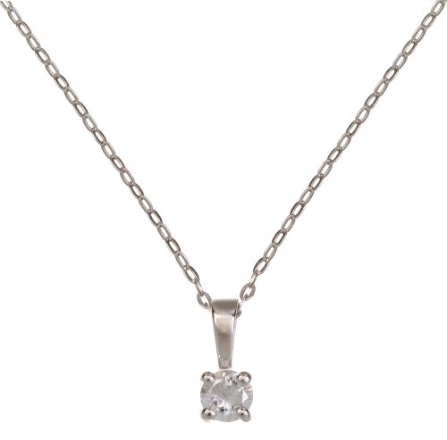 9ct White Gold 10pt Single-Stone Diamond Pendant on 46cm Trace Chain