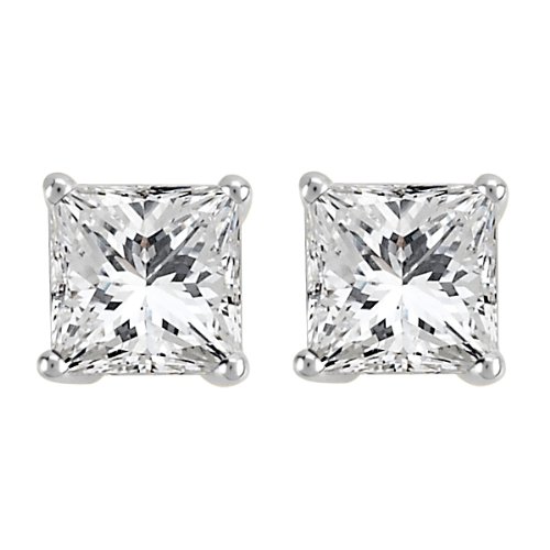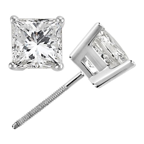Allurez 3.00ct. Princess Cut Diamond Stud Earrings Platinum (G-H, VS2-SI1)