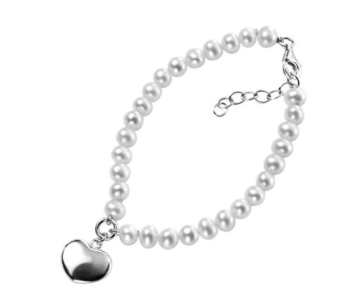 Elements Sterling Silver B3162W Ladies' Pearl Bracelet with Puff Heart 18cm + 2.5cm EXTENDER