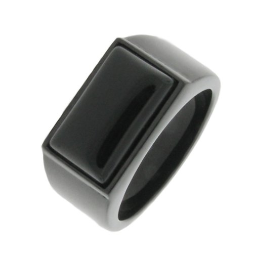 Add sleek and stylish detailing to your contemporary fashion sense with the rich black ion plating detailing that creates the clean lines of this ring design. A black onyx square-shaped stone is inlayed in the center, adding to the stylish black color.