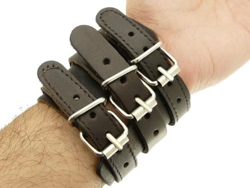 Neptune Giftware Leather Wide Triple Strap Cuff Wrap Gothic Wristband Buckle Fastening - Available In Black or Dark Brown - YOU CHOOSE - DARK BROWN LEATHER