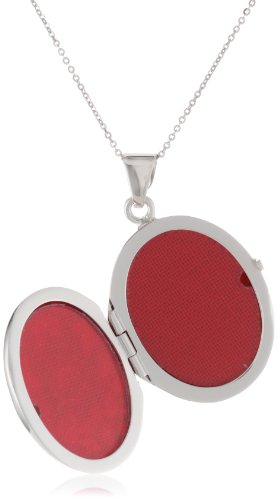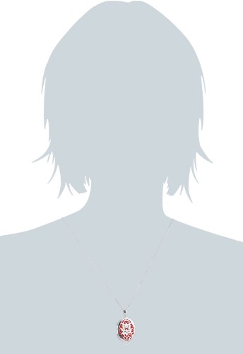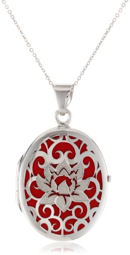 Sterling Silver Italian Red Oval Locket with Lotus Flower Design Pendant Necklace, 18"