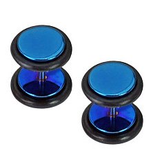 Titanium Anodized Blue Earrings Rings Fake Cheater Plug 16 gauge ( 1 Pair)