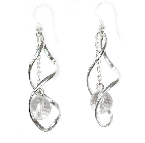 Earrings made of white quartz set on silver plated metal. Hooks out of sterling silver 92,5%.